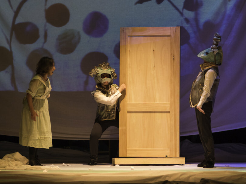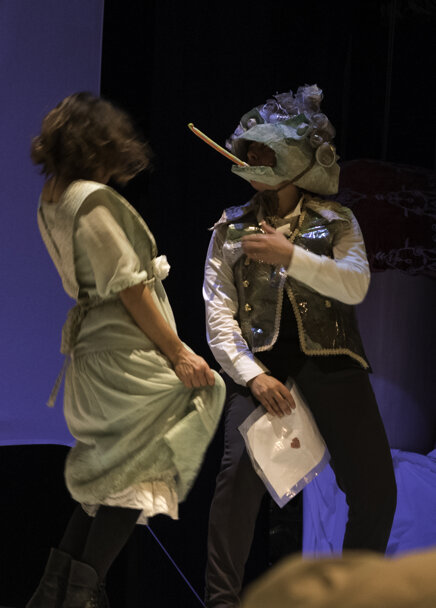 In una scenografia in continua trasformazione, dove l’elemento video dialoga con i giochi di ombre e trasparenze, la storia di Alice si snoda immersa in un’atmosfera visiva e sonora rarefatta e suggestiva, punteggiata da canzoni che si materializzano inaspettatamente come addensamenti di pensiero. In un susseguirsi di incontri sorprendenti, di momenti poetici e di situazioni improvvisamente comiche e grottesche ci si trova trasportati in una realtà altra in cui davvero tutto può accadere, naturalmente a patto che si desideri sognarla così!