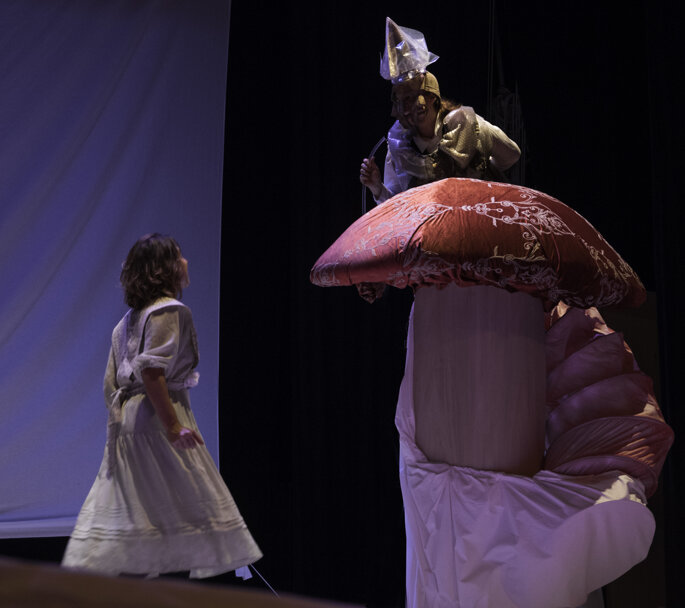Da uno dei racconti più celebri della letteratura di tutti i tempi uno spettacolo la cui trama (in linea con la narrazione) trova senso e fascino nella capacità infantile di varcare continuamente, senza soluzione di continuità, il confine fra reale e immaginario. Uno spettacolo che attraverso un linguaggio scenico ricco e multiforme esalta la meravigliosa arte di Carroll di condurci con leggerezza e naturalezza nella dimensione onirica attraverso repentini e inaspettati cambi di situazione e percorsi mentali ai limiti dell’assurdo.