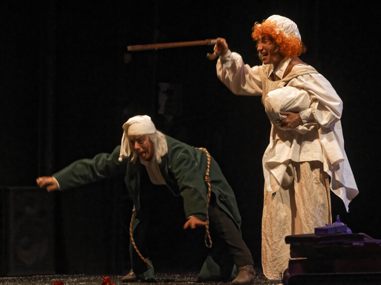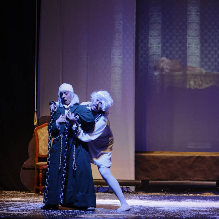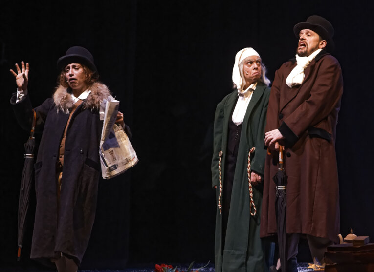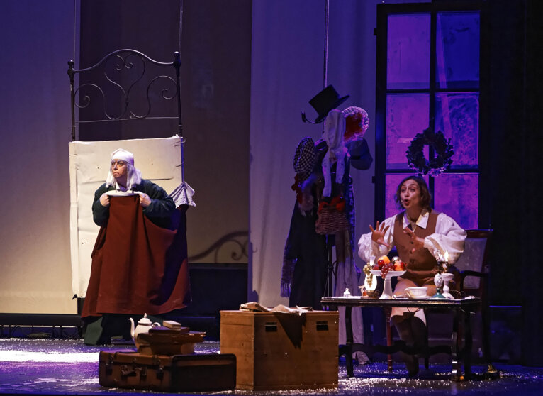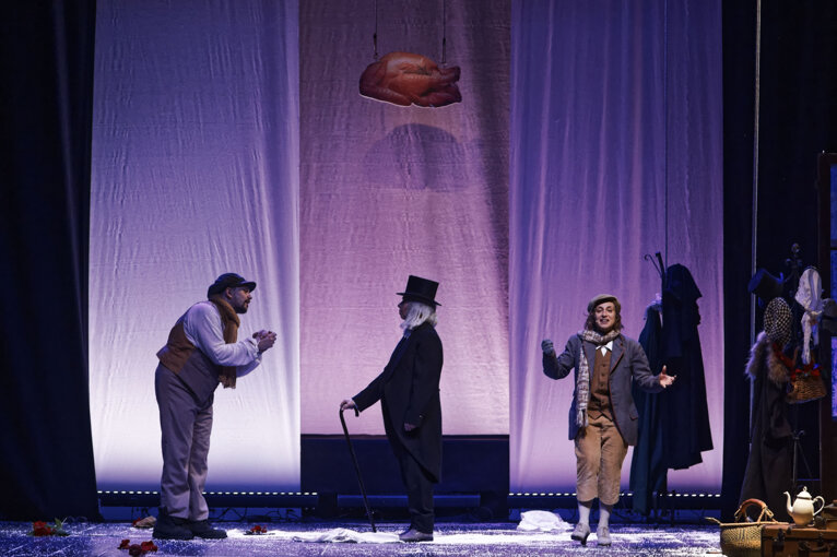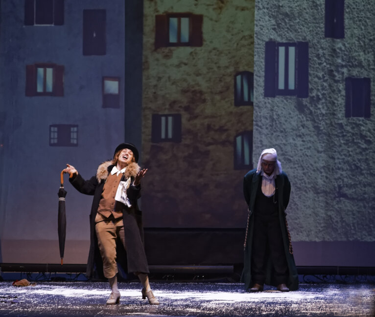 Un classico di tutti i tempi: il celebre racconto di Dickens in una messa in scena che ne esalta il sapore gotico e fiabesco. Il vecchio Scrooge è un uomo ormai consumato dall’avarizia: inacidito, scorbutico nemico del mondo intero, la sua vita sembra votata alla solitudine, quando proprio nella notte della vigilia di Natale, gli appare il fantasma del suo defunto socio Marley preannunciandogli la visita di tre misteriosi spiriti. Comincia così l’avventura di Scrooge, trasportato in volo nella fredda notte londinese dagli spiriti dei Natali passati, presenti e futuri che gli mostrano in un viaggio nel tempo, la sua infanzia, il presente delle persone che dovrebbero essergli care, e infine le ombre delle cose che ancora non sono. Attraverso questo viaggio iniziatico Scrooge riscoprirà il senso e il sapore della vita da tempo dimenticati. Uno spettacolo ricco di soluzioni sceniche sorprendenti, giochi di ombre e luci che evocano spiriti giocosi e fantasmi di un passato pieno di vitalità e di pathos; un ritmo sostenuto scandito dalle canzoni e dalle coreografie in uno spazio scenico che si trasforma a sorpresa in ambienti sempre nuovi.